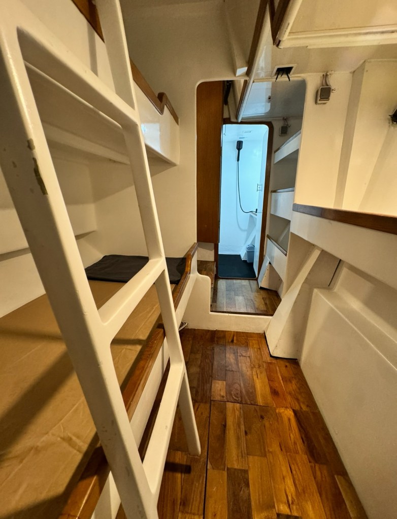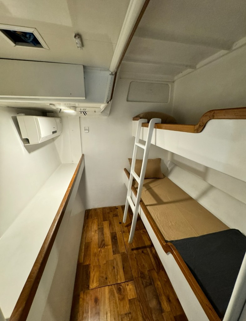 Four air-conditioned private guest cabins with en suite bathrooms . Mahalo accommodates 8 guests — so no bunk sharing with snorers, and more privacy than most surf boats in the region.